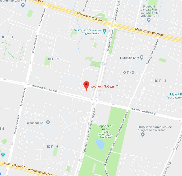 | Адрес офиса: | г. Витебск, ул. Пушкина, дом 6, офис 213B телефон для предварительной записи +375 29 5147924 |