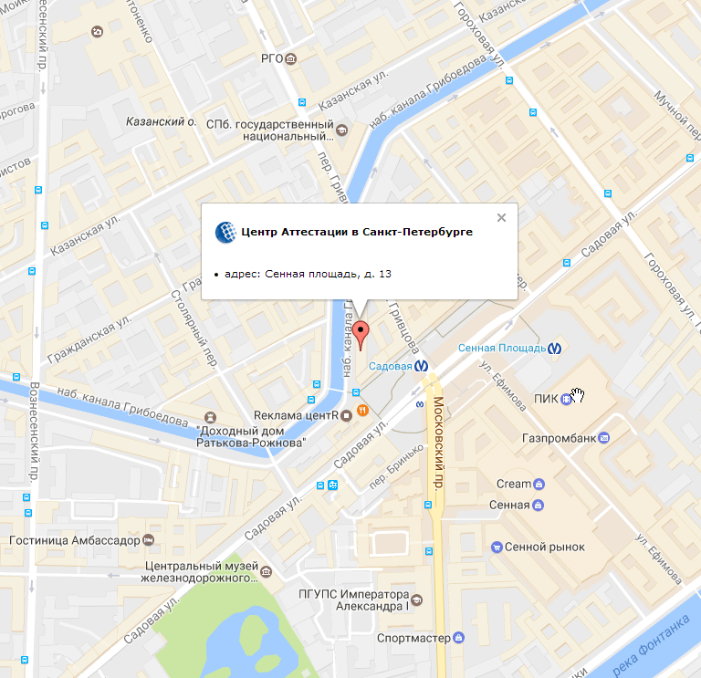 | Адрес офиса: | г. Санкт-Петербург, Сенная площадь, д. 13 Кредитно-кассовый офис в г. Санкт-Петербург Московского филиала АО Банк "ККБ" вход со стороны набережной канала Грибоедова, д. 54 |